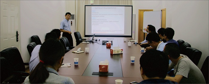 519日,同济大学海洋与地球科学九色 古地磁实验室主任赵西西教授应邀来访九色 交流并作学术报告。上午9点半至11点半,赵教授在九色 407学术报告厅做“古地磁学在海洋地质科学中的应用”的学术报告。他深入浅出的介绍了古地磁学的基本原理、采样流程和实验方法等。尤为精彩的是,他举例介绍古地磁学方法在中国南海、日本南海海槽等经典地区的实际运用,探讨了其在地球科学研究中的重要性。作为参加过15ODP/IODP的航次科学家,他还介绍了美国“决心号”和日本“地球号”大洋钻探船上的专业实验室的功能和相关规则等。他建议我们利用“决心号”六月十一日首次在中国大陆停靠的机会,到上海港具体了解这首功勋卓著的大洋钻探船的相关设备和实验室,为后续大洋钻探提前做好准备。