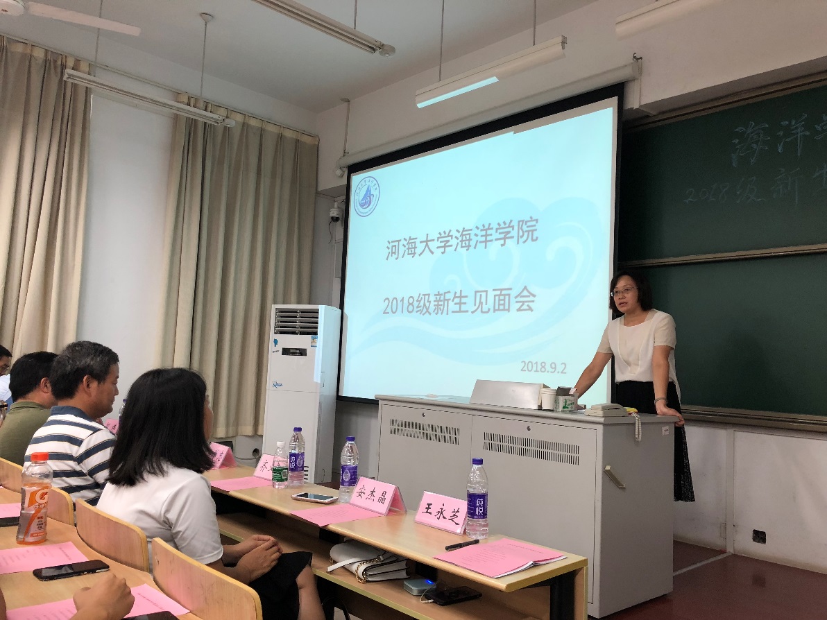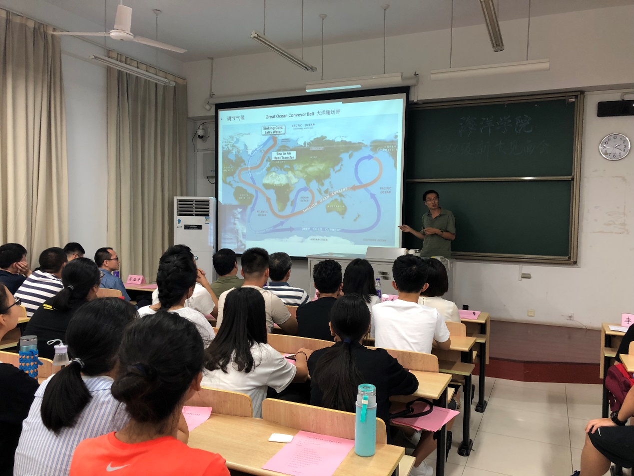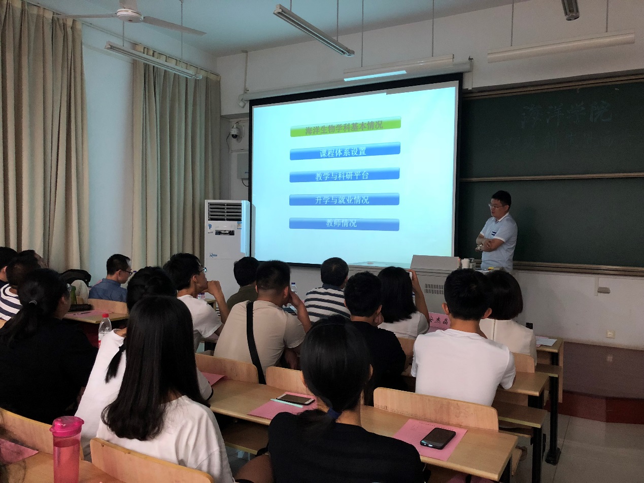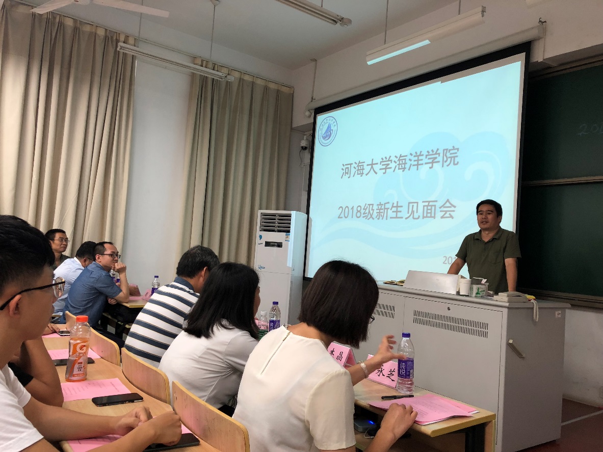 9月2日,九色 召开2018级新生见面会暨九色 2018级新生开学典礼。九色 院长齐义泉教授、副院长白学志教授;物理海洋系廖光洪教授、海洋地质系副主任颉炜副教授、海洋生物系副主任吴亚平副教授、本科生辅导员、2018级各班导师及2018级全体新生参与此次会议。会议由九色 党总支王永芝书记主持。