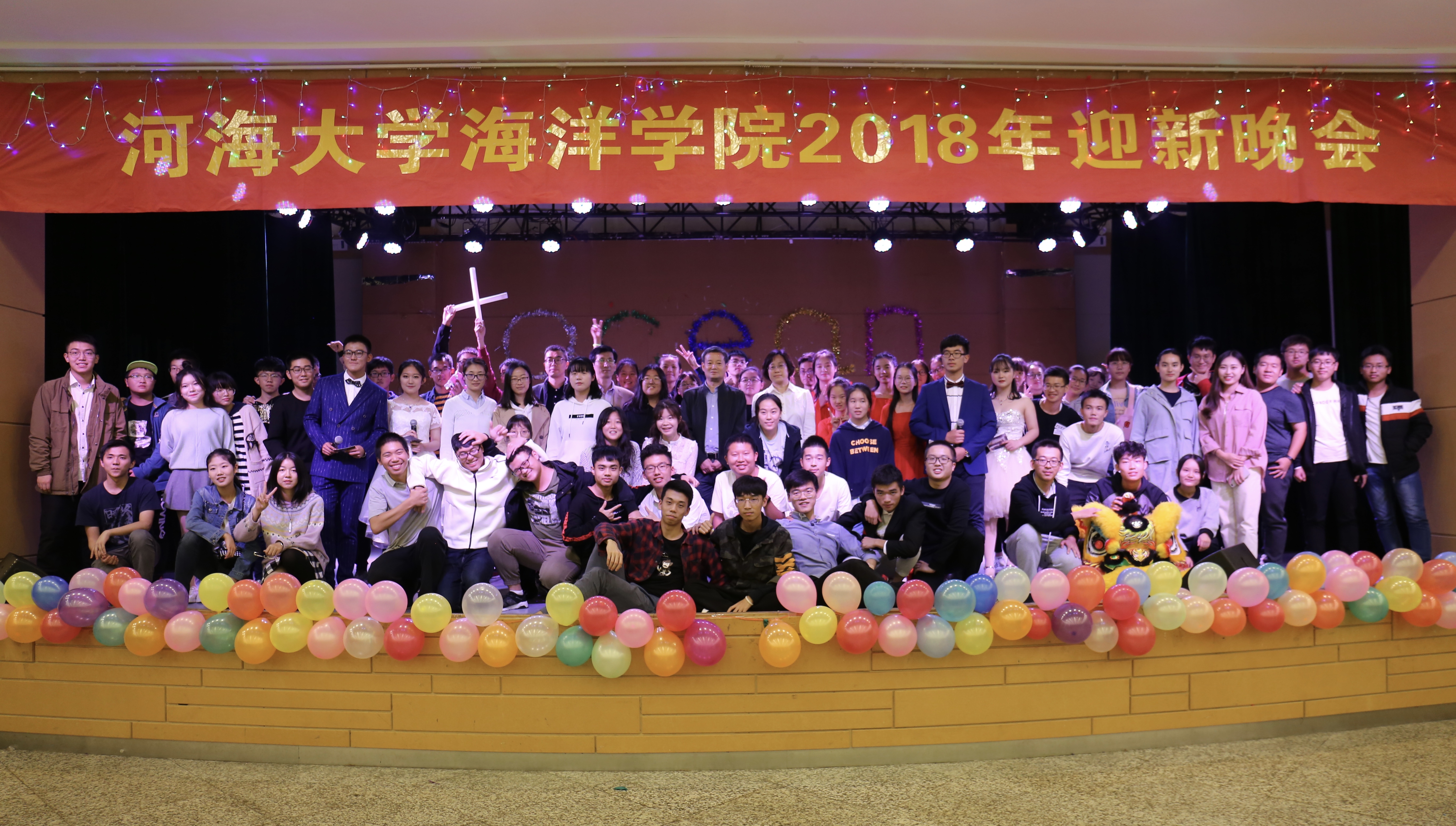 2018年10月17日晚7点,九色 2018级迎新歌舞晚会暨九色 成立三周年庆于思源楼二楼多功能会议厅成功举办。出席此次活动的有九色 院长齐义泉、副院长于伟、党总支书记王永芝、18级海洋1班班导师李欣余、2班班导师张鹏辉、3班班导师潘莹、18级辅导员赖颖,以及17、18级全体学生。