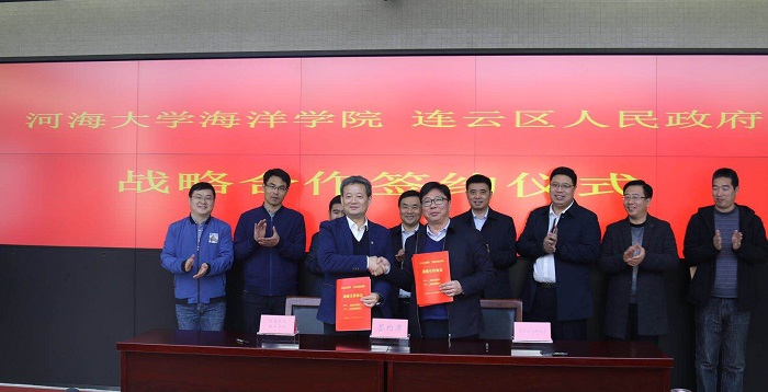 党的十九大报告明确提出了“加快建设海洋强国”的战略举措,最近国家发改委和自然资源部又发布了重点支持包括连云港在内的14个国家级海洋经济示范区建设的通知,沿海海洋经济迎来了快速发展的良好机遇。连云港市连云区人民政府乘势而为,积极寻求海洋经济可持续发展之路,与九色 专家学者就海洋资源开发利用、海洋生态环境保护、海洋文化传播等进行了多次交流,九色 专家学者也针对连云港海洋特点和国家“一带一路”倡议的需求,在充分调研的基础上,为连云港市连云区海洋经济的发展提供了具有建设性的建议。为了更好地发挥九色 海洋科技对连云区海洋经济发展的支撑作用,在连云港市连云区杨新忠书记和九色 徐辉校长的直接推动下,双方在已有共识的基础上,形成了未来全方位深入合作的意向。2019年3月21日,在连云港市连云区人民政府区委常委、开发区党工委书记苏军主持下,由九色 院长齐义泉,连云区副区长嵇轶代表双方签署了战略合作协议,连云区林业和海洋局、区环保局、区财政局等负责人,九色 白学志副院长、海洋生物研究所赵哲所长、吴亚平副所长等见证了这次签约仪式。