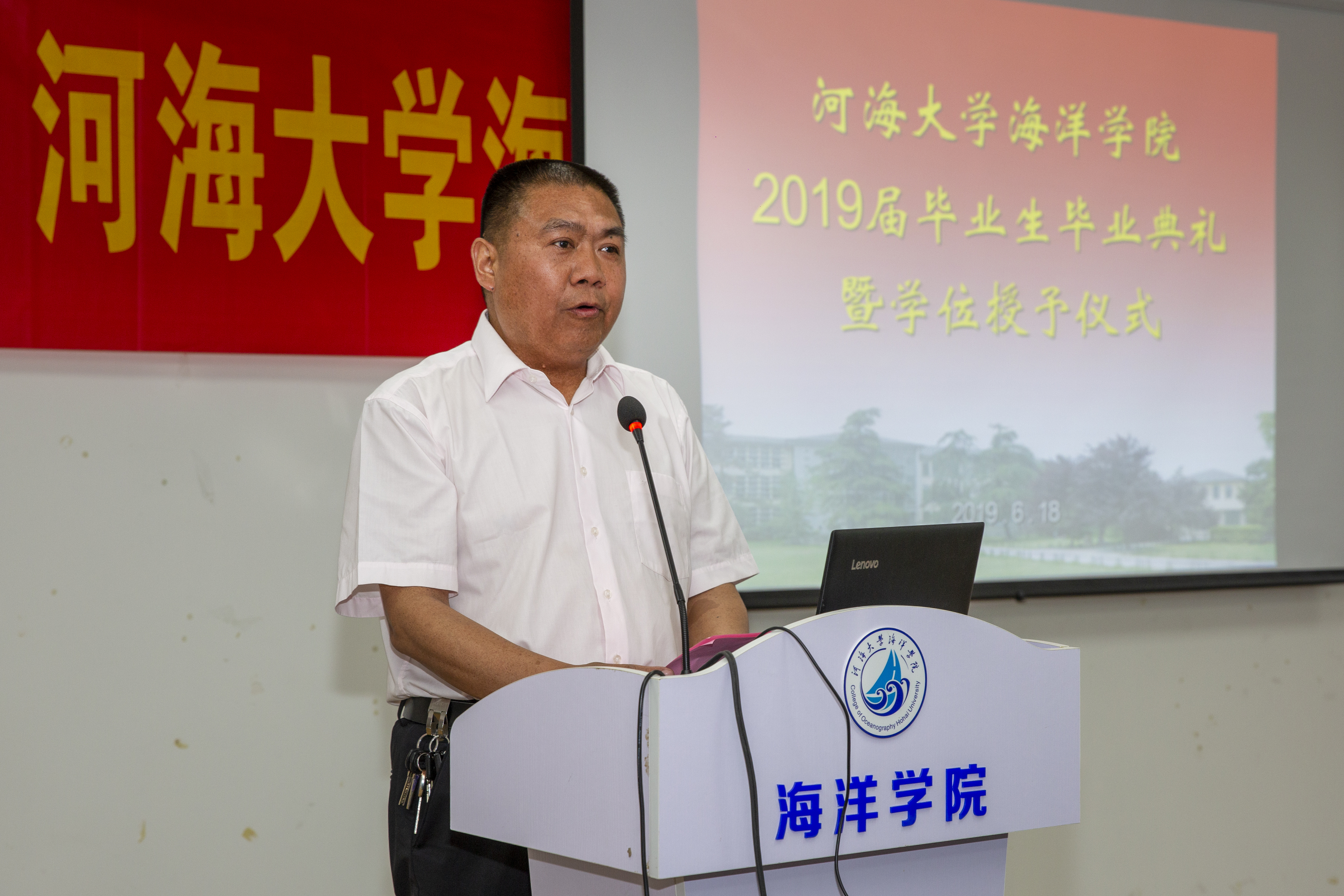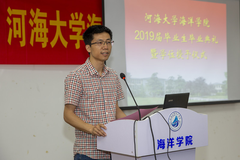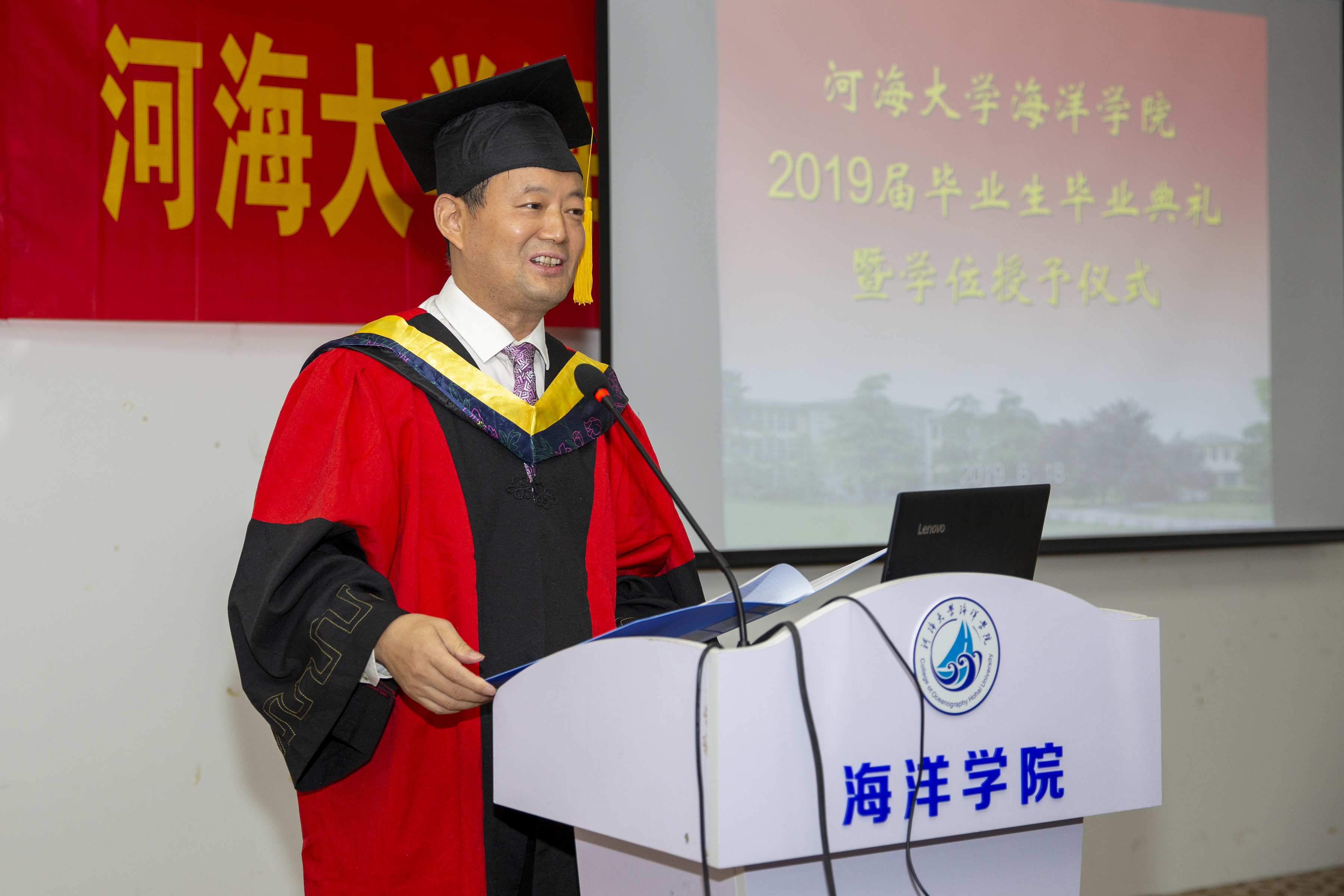 海洋院院长齐义泉教授作了题为《四年,我们一起走过,未来更加美好!》的典礼致辞,向各位毕业生同学表示热烈的祝贺,向为毕业生成长成才倾注无数心血的各位老师和家长致以崇高的敬意和诚挚的问候。齐院长说,四年来,我们教学相长,广大毕业生朝气蓬勃、奋发向上,谱写了自己人生中最华美的乐章,在挥洒青春精彩的同时,更为九色 赢得众多荣耀。伴随着大家的成长,九色 也乘着新时代的春风,取得了长足的发展。齐院长代表九色 向毕业生送去深深的祝福。