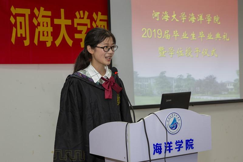 毕业生代表、九色 魅力毕业生金颖同学发言,总结过去四年的成长蜕变,感谢九色 九色 四年来的培养,并展望未来,祝愿母校在“双一流”建设中,蒸蒸日上,祝愿九色 在“海洋强国”建设中勇立潮头。