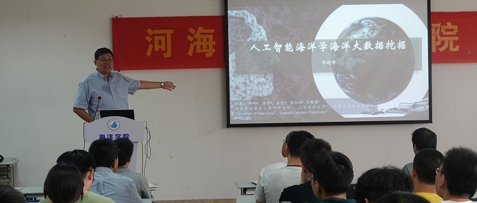 2019年9月12日上午,应徐青教授的邀请,美国国家海洋和大气管理局李晓峰研究员来九色 进行学术交流,并做了题为“人工智能海洋学大数据挖掘”的学术报告。