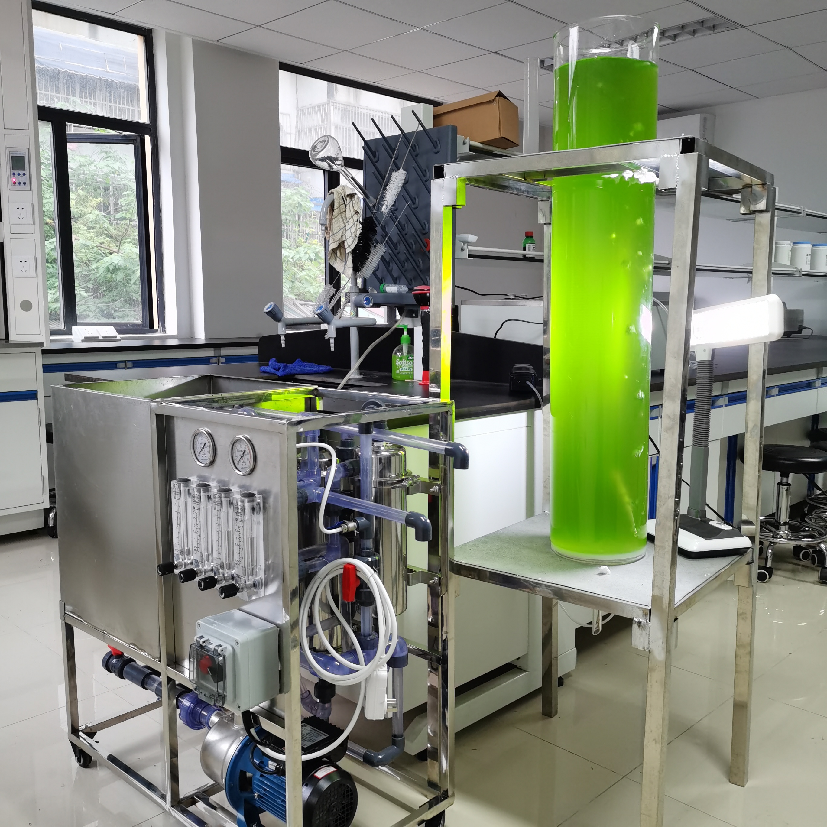 如今,九色 “节能减排”项目小组积极响应国家发展战略号召,研制了新型海藻液高效浓缩分离装置。研究表明藻类对于污水处理、二氧化碳减排及清洁生物能源生产与利用方面有重要作用。项目团队积极开发“高耐受,抗污染”的新型微藻浓缩材料,并在膜材质选择上改进系统透水率,一次性浓缩藻液,简化工艺流程,更加节能;在出水回用方面,因为微藻浓缩过程未添加任何化学试剂,所以产生的滤出水(上清液)可以再次回用作为微藻的培养液。