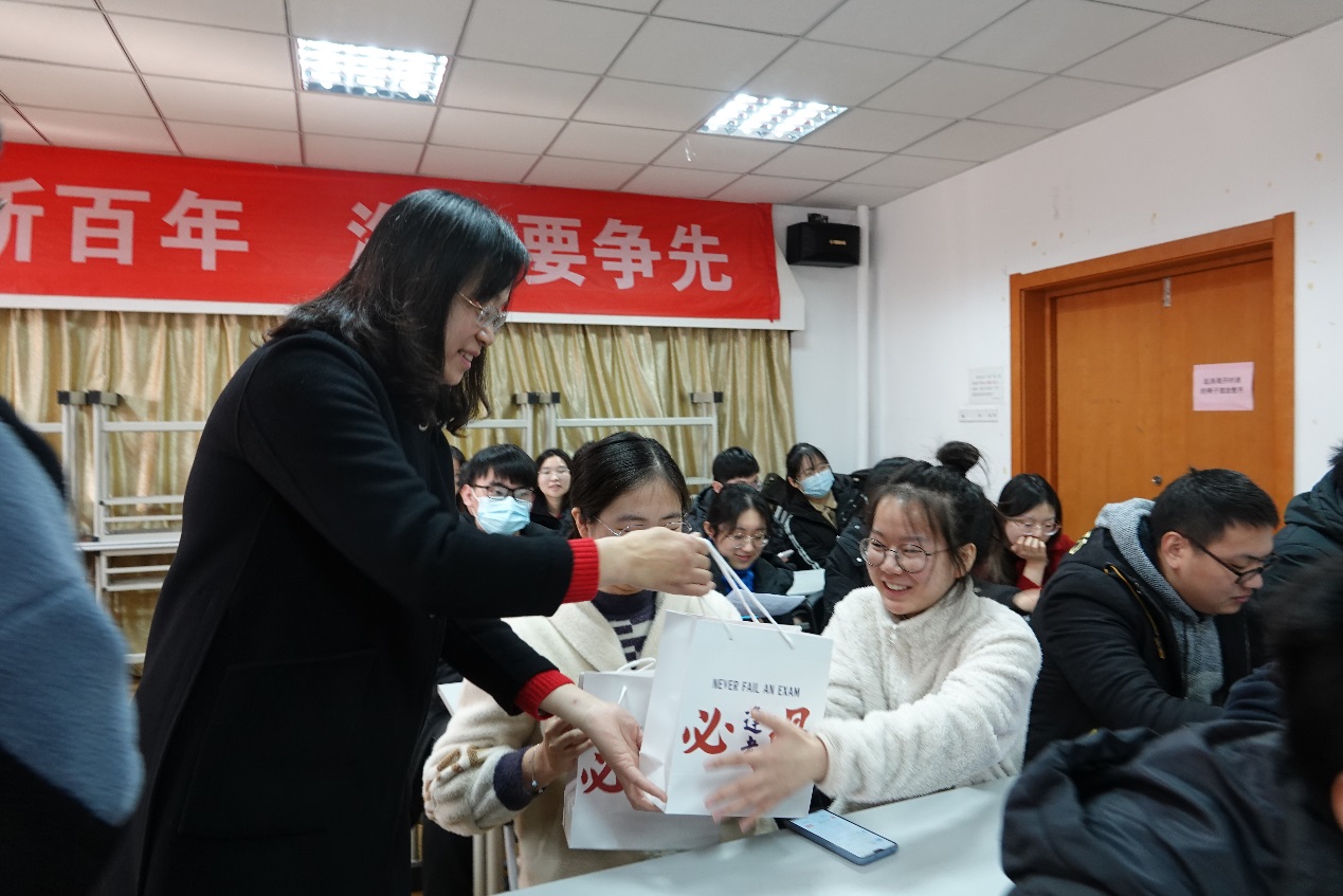 最后,由各位老师们亲手向考研同学分发九色 精心准备的考研礼包。以“逢考必过”小礼袋,包含了心想事“橙”和暖心手宝,为在寒冬里备战的同学们带来热火般温暖与昂扬拼搏的力量!