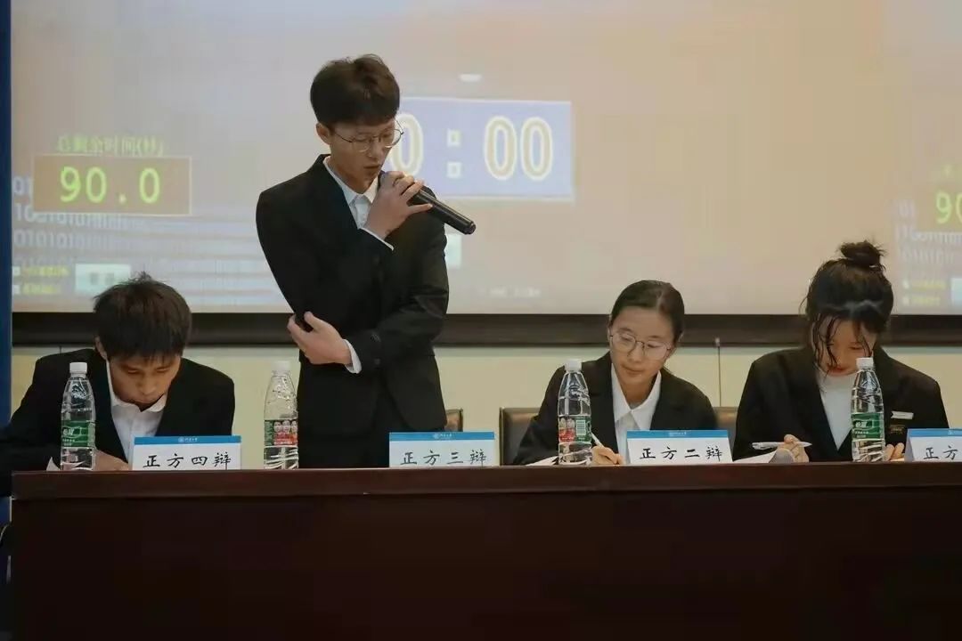 决赛出场辩手:廖紫君、王湛雅、王麒、缪兴城