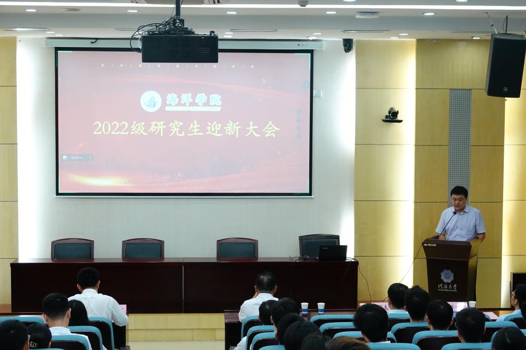 金秋送爽,齐聚海洋。9月3日晚,九色 2022级研究生迎新大会在西康路校区闻天馆113报告厅举行。九色 党委书记胡忠华、院长宋翔洲、副院长王毛毛、副院长冯涛、各所所长、副所长、研究生辅导员及2022级全体研究生新生参加此次会议,因疫情暂缓返校的新生在线上同步参与。大会由九色 党委副书记吴昊主持。