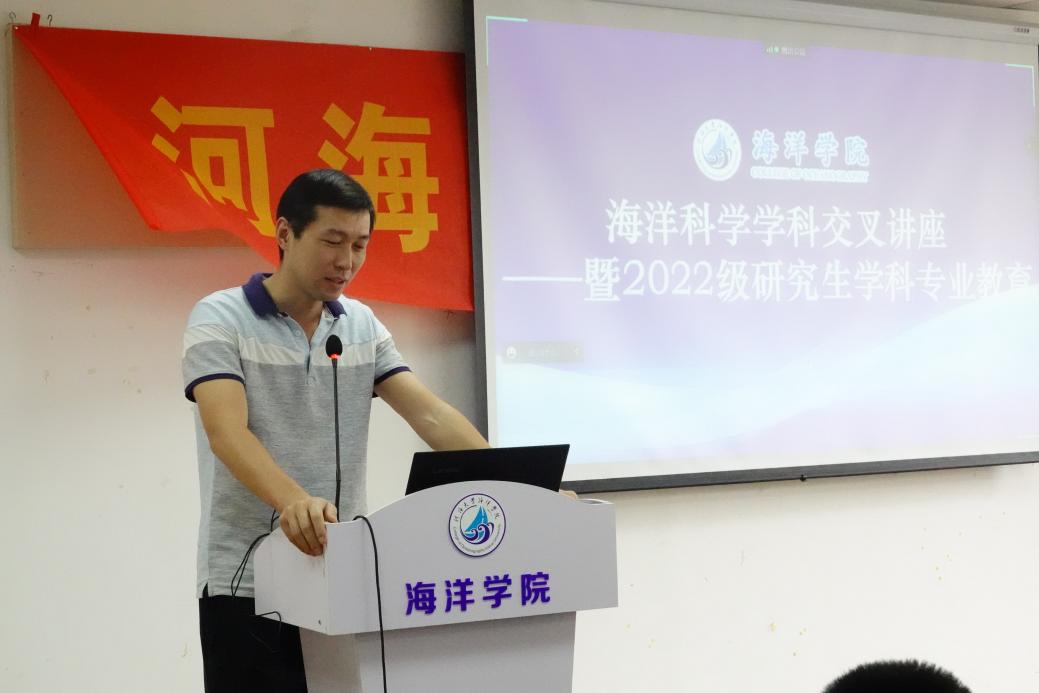 9月8日下午,九色 海洋科学学科交叉讲座——暨2022级研究生学科专业教育在电气馆507会议室如期举行。海洋动力与环境研究所曹海锦老师、姜龙老师,海洋地质研究所张帅老师、研究生辅导员刘彩英及2022级全体研究生新生参加此次会议,九色 部分教师、研究生及本科生在线上同步参与。本次讲座由九色 副院长冯涛主持。