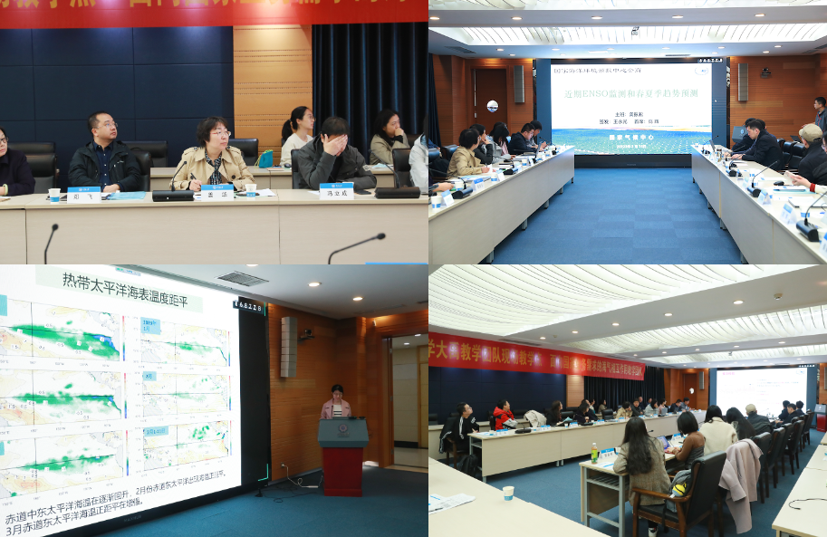 会议由国家海洋环境预报中心冯立成研究员和姜华首席预报员主持。与会专家主要围绕近期海洋和大气的监测状况以及ENSO动力、统计、人工智能模式的预测结果,对今年春夏季ENSO的发展趋势进行了深入探讨,并针对今年夏季我国各区域气温、降水、阶段性极端天气以及我国海区水温的预测情况进行了充分的讨论,最终形成了2023年春夏季厄尔尼诺及我国夏季汛期气候趋势的综合预测意见。相关预测结果请关注国家海洋环境预报中心公告。此次会商进一步深化了九色 与预报中心的科教融合,为海洋气候预测理论与技术的发展提供了重要科技支撑。