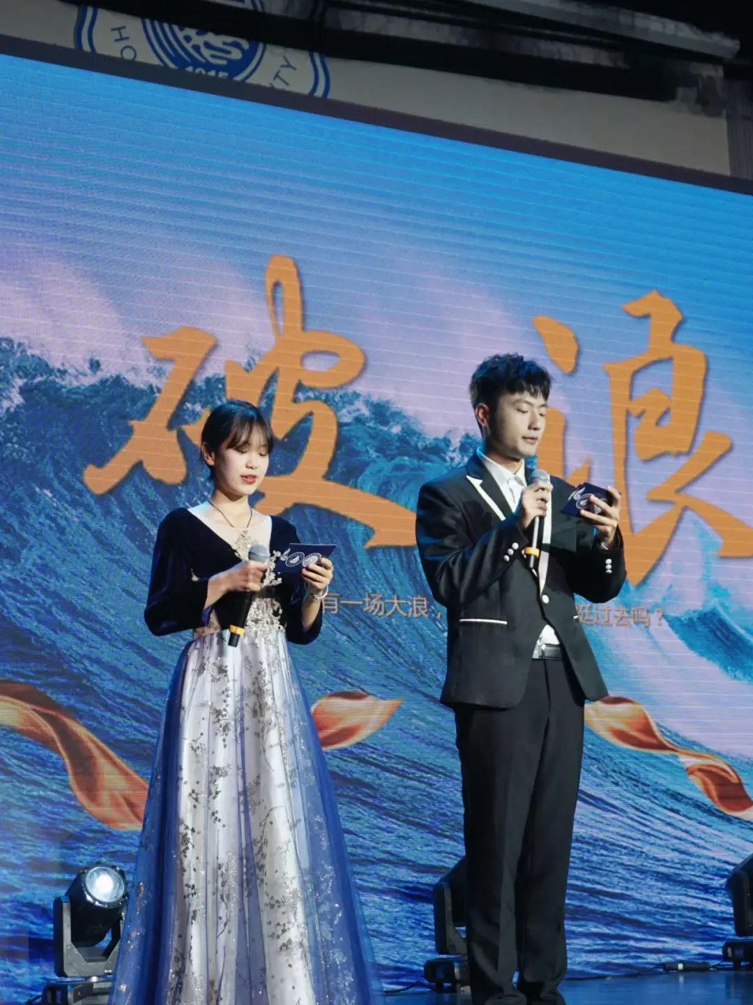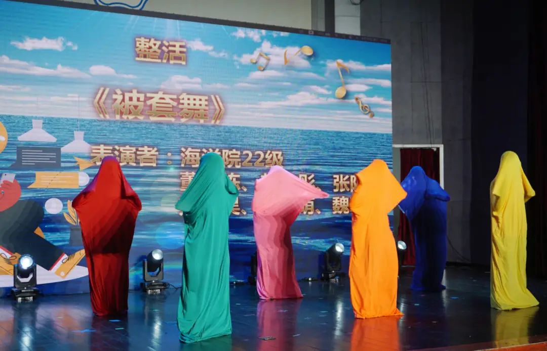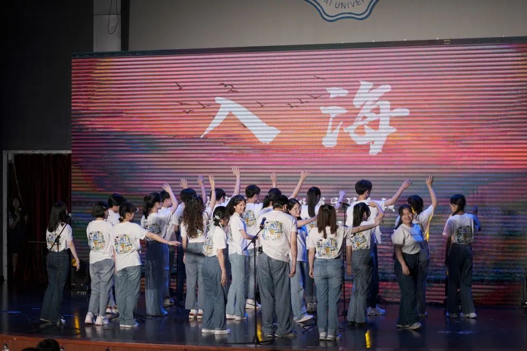 最后,可爱被套精灵们的《被套舞》将晚会推向高潮,之后一曲原创歌曲《蓝色》表达了坚韧可敌困境,接下来是由21级学生带来的诗朗诵《向海》毕业后的他们依然前途似海。之后是毕业生代表带来的大合唱《入海》他们用泪水作为最后的告别,但眼中依然饱含炽热,奔赴漫漫山海。最后一首惊喜曲目《再见》为晚会画上了句号。