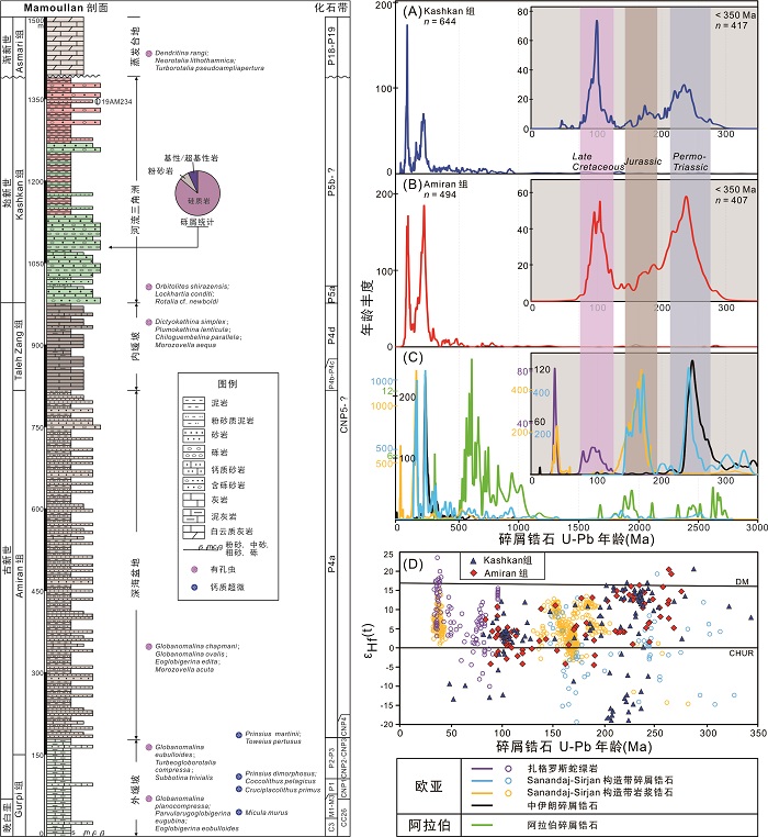 图1 伊朗Amiran盆地生物地层学(有孔虫和钙质超微化石)与碎屑物源分析