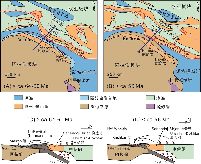 图2 扎格罗斯造山带古新世-始新世古地理恢复图及构造演化简图