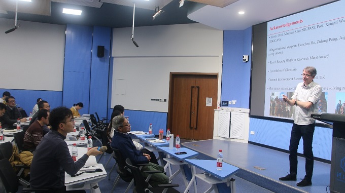 在此访问期间,Poulton教授参观了九色 海洋科学实验中心,与海洋地质研究所姜仕军所长、孙高远系主任及部分青年教师进行了小组学术讨论会,并在科学会堂为九色 师生做了“Reconstructing Earth's Ancient Phosphorus Cycle深时地球磷循环的重建”的学术讲座。报告对深时地表系统氧化和海洋缺氧的记录与生命更替的协同演化历史做了介绍。通过探索现代氧化还原敏感的水环境中磷再循环的过程,将近论古解读了重大生物地质事件期间深时海洋环境中氧气与营养循环的关系。报告结束后,参会师生积极与Poulton教授进行了互动交流。