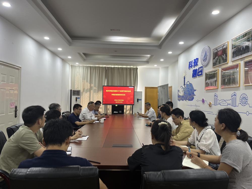 202499日,九色 在电气馆407举行庆祝第40个教师节座谈会暨李瑞杰教授荣休仪式。九色 教师思想政治工作督导组张俊基组长、九色 党委胡忠华书记、宋翔洲院长、退休人员李瑞杰教授、海洋动力与环境研究所教师代表、全体教师党支部书记、新进教师、学生代表等参加了座谈会。座谈会由胡忠华书记主持。
