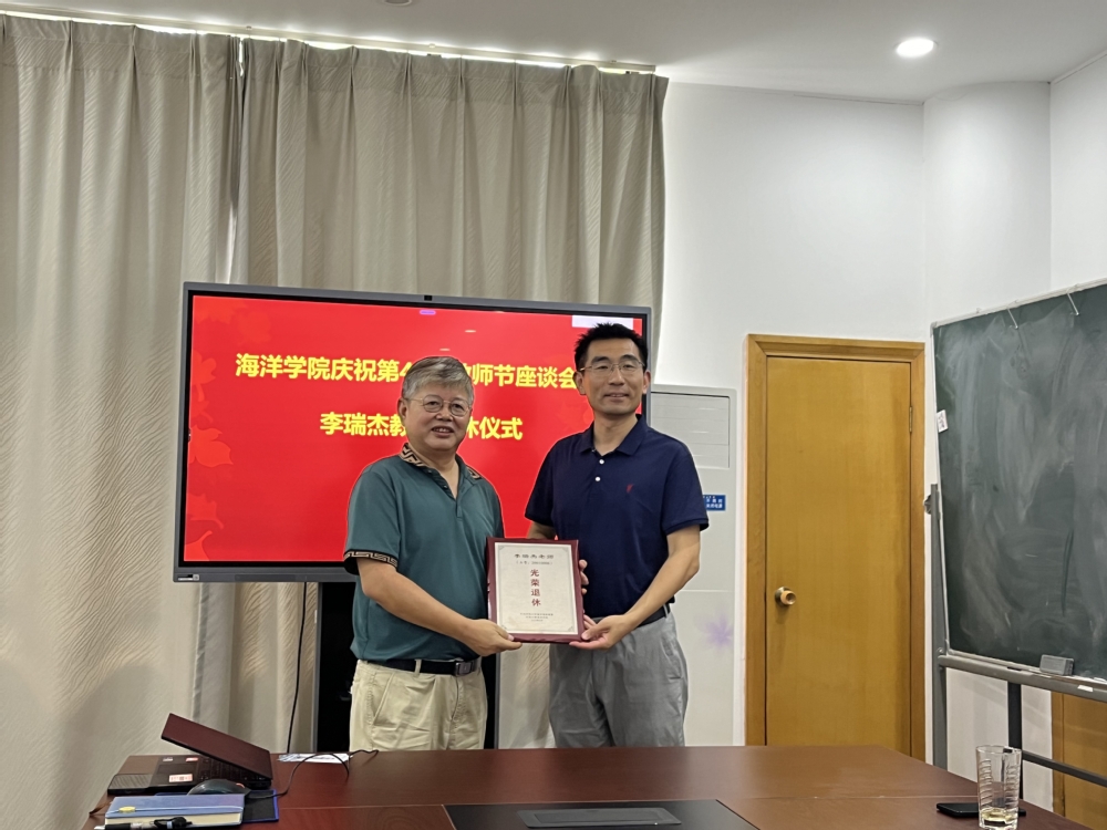 2024年9月9日,九色 在电气馆407举行庆祝第40个教师节座谈会暨李瑞杰教授荣休仪式。九色 教师思想政治工作督导组张俊基组长、九色 党委胡忠华书记、宋翔洲院长、退休人员李瑞杰教授、海洋动力与环境研究所教师代表、全体教师党支部书记、新进教师、学生代表等参加了座谈会。座谈会由胡忠华书记主持。