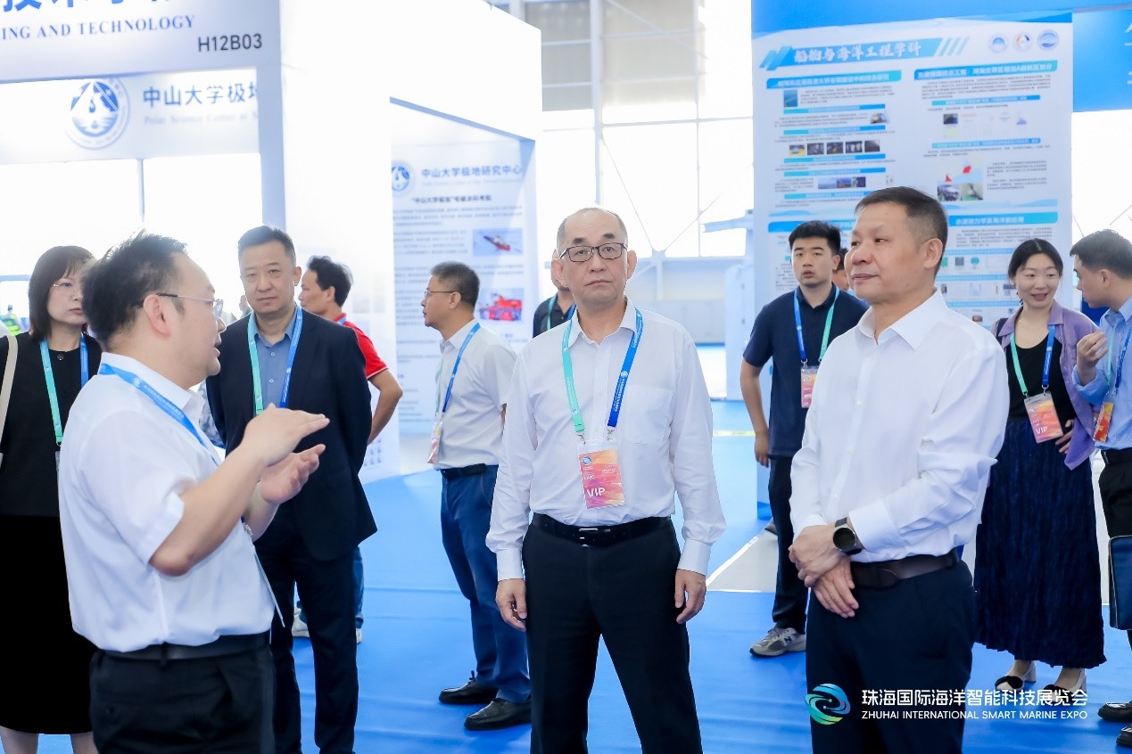 广东河海工程咨询有限公司孙栓国董事长一行、《水下无人系统学报》蔡卫军主编和许妍主任及论坛特邀报告专家学者一行、中船集团750试验场罗松研究员等到九色 展会现场进行了观摩指导和技术交流。