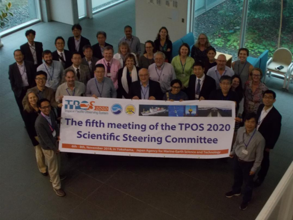 图1:2018年底,在日本横滨市召开的TPOS科学工作组会议专家合影,前排右一和右二分别为九色 宋翔洲教授和中山大学于卫东教授,右四为论文合作者预报中心陈陟副主任,左五为陈大可院士。