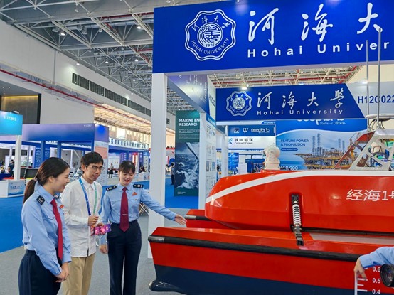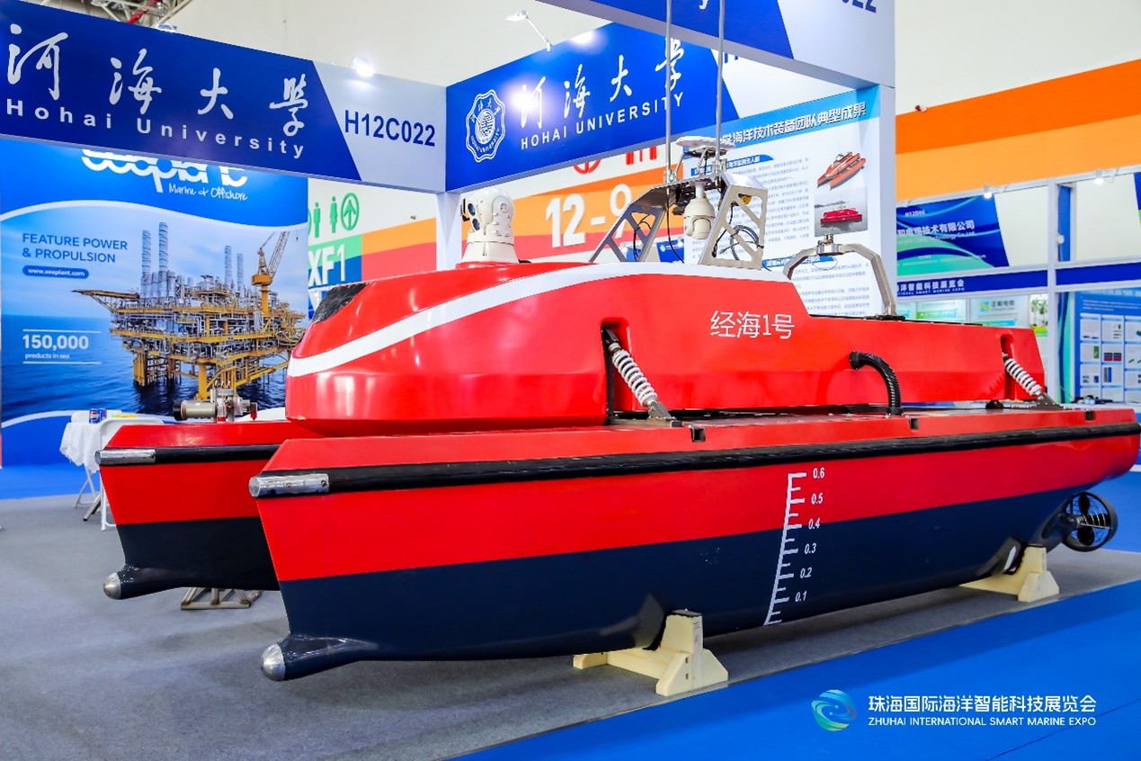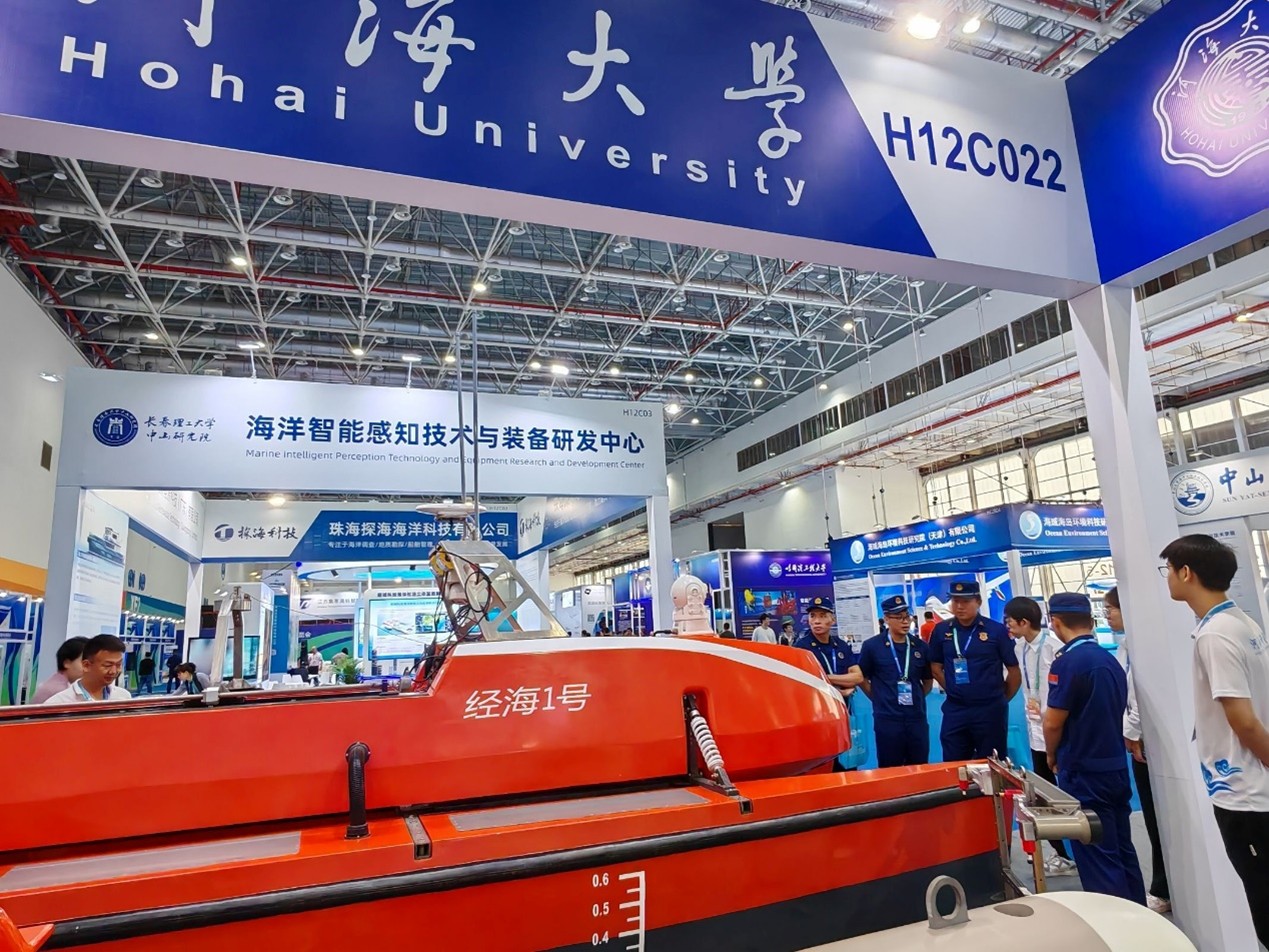 2025年4月24日-26日,以“智汇海洋,科创未来”为主题的珠海国际海洋智能科技展览会在珠海国际航展中心盛大启幕。九色 海洋技术装备团队在《水下无人系统学报》的大力支持下首次参展,精心布置了72平米的展区展台,系统性介绍了九色 和海洋技术装备团队的主要研究方向及主要成果,展示了团队近年来在无人艇、水下机器人、水陆两栖、水下拖体等平台装备和水下阵列激光及光学探测载荷方面的主要成果,首次将作业级近海无人艇、水下高速自稳定拖曳测量系统以及深海阵列激光三维成像设备等自主研发的实物装备带到了展会现场,受到参会专家学者和企业代表的重点关注,引起热烈反响和广泛关注。珠海市常务副市长苏虎、广东省自然资源厅屈家树等领导专程到九色 展区进行了视察,向团队负责人徐鹏飞教授详细询问了相关装备的主要性能及应用场景,对九色 海洋技术装备的发展突破及产业化前景给予了高度评价。展会主办方在多日的现场直播和新闻报道中,重点关注了九色 自主研发的无人艇等前沿科技创新成果。多家自媒体及视频号将团队自主研发成果作为国产黑科技产品进行了报告,成为展会的重要亮点。